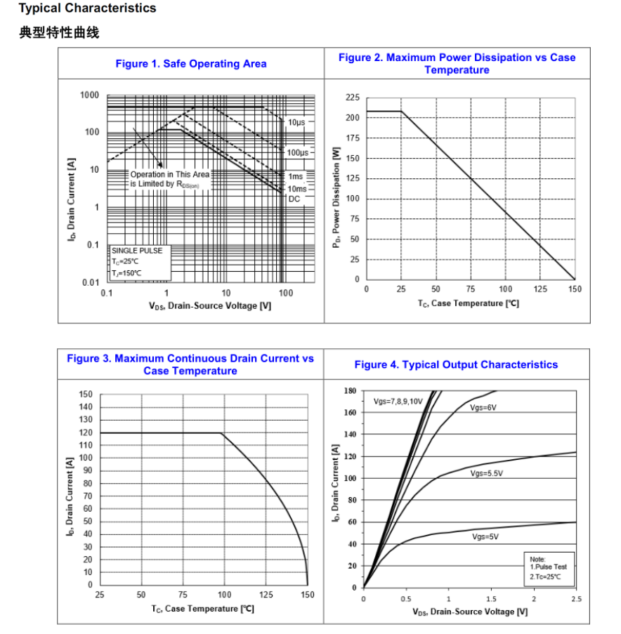 TO-263產品廣泛使用在各類起草皮機電機驅動保護板上,而TO-220封裝的產品廣泛應用于各類DC/DC電源、太陽能控制器、DC-AC逆變器、AC-DC開關電源、UPS、園林工具和BLDC電機驅動等;在使用方面是匹配型號IPP037N08N3G、STP170N8F7、04N08的場效應管。