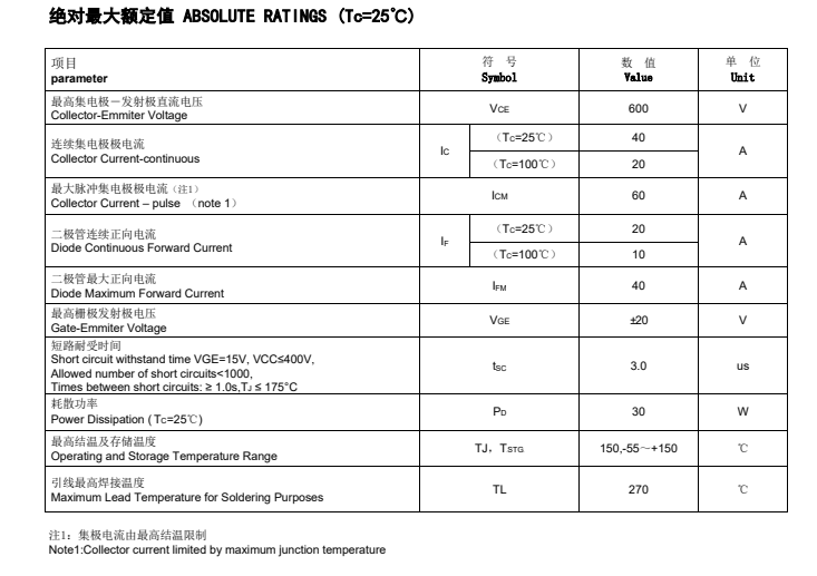 從上述特點(diǎn)可知,這一款20A、600V電流、電壓的FHF20T60A型號(hào)IGBT單管參數(shù)是很適合使用在角磨機(jī)無(wú)刷電機(jī)上。